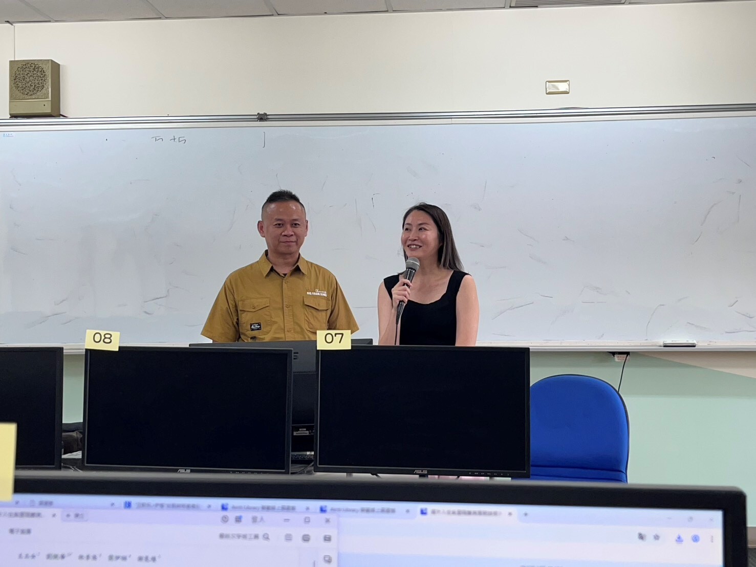 本次工作坊由語言中心主辦,特別邀請講師施倫閔老師進行主題分享,帶領與會教師與學生實際體驗兩項新興AI創作工具——Vidnoz AI與A1.art。